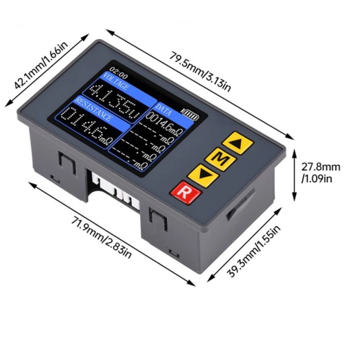 Діапазон вимірювання внутрішнього опору: 0,1 мОм ~ 6,999 Ом, максимальна роздільна здатність 0,1 мОм