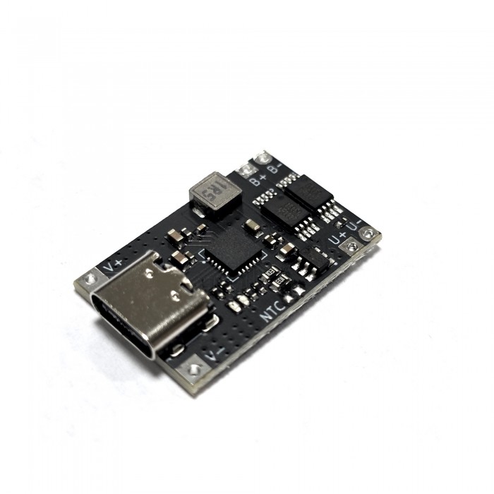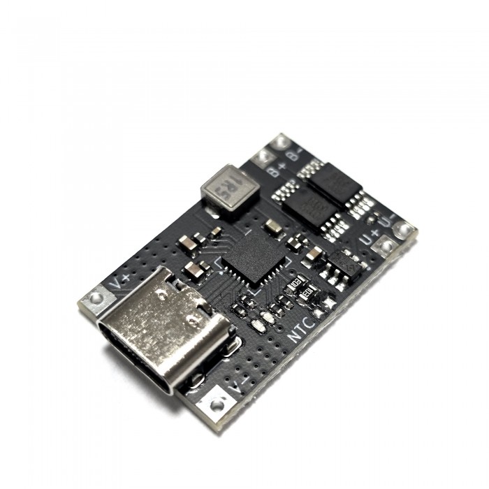 Цей модуль використовує спеціалізовану схему зниження напруги на базі зарядного чіпа акумулятора TI BQ25606, що забезпечує високу вихідну ефективність, стабільну роботу та захист від перезаряду та перерозряду. Вхідний інтерфейс Type-C, діапазон вхідної напруги 4,5-12 В, з максимальним вихідним струмом 3 А, дуже підходить для заряджання літієвих акумуляторів з номінальною напругою 3,7 В. Плата оснащена червоним світлодіодним індикатором заряджання та синім світлодіодним індикатором стану, які дозволяють візуально спостерігати за станом заряджання модуля та акумулятора.